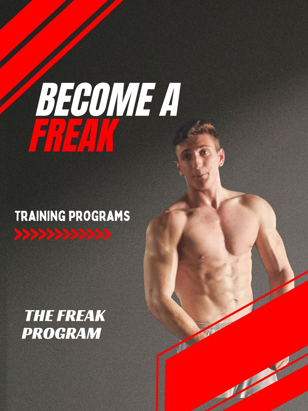 The Freak Program consists of a 6-day split and it is the one I am currently using.Suggested only for absolute FREAKS and people who train for muscle hypertrophy and strength.